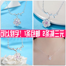 925纯银项链女锁骨链日韩学生樱花吊坠简约配饰品生日520礼物刻字