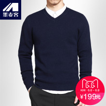墨麦客男装春季款纯羊毛衫春季男士加厚V领套头针织衫毛衣男
