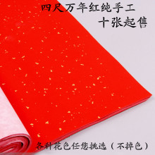 文房四宝四尺冷金纯手工万年红宣纸春联对联10张 包邮厂家直销