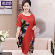 2017夏季新款亚麻短袖连衣裙 宽松大码打底裙时尚妈妈装40-50岁女