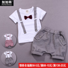 2017夏装新款小男童背带套装短袖T恤男宝宝夏季短裤子半1-2-3周岁
