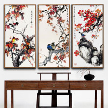 新中式现代客厅挂画玄关装饰画沙发背景墙画壁画酒店有框国画花鸟
