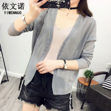 2017新款小衫女春长袖韩版网纱中袖上衣女遮肚子显瘦防晒开衫女夏
