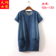 2015夏季新款韩版显瘦大码女装短袖牛仔连衣裙200斤胖MM花苞裙子