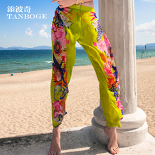 添波奇度假沙滩裤女显瘦高腰灯笼裤防嗮性感阔腿裤海边宽松女长裤