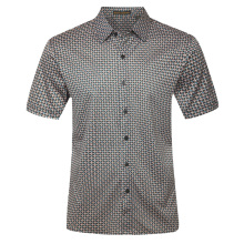 鲨鱼夏季新款双丝光棉短袖衬衫男士商务休闲提花免烫丝绸缎衬衣男