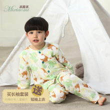 mixiaomi儿童小熊春夏全棉纱布男孩长袖短袖睡衣三件套纯棉家居服