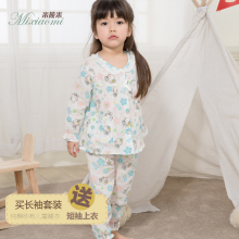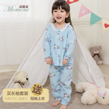 儿童春夏全棉薄款双层纱布纯棉女童小童中大童长袖睡衣套家居服