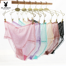 2条装三角裤女网纱透气速干透明蕾丝性感中腰女士内裤薄花花公子