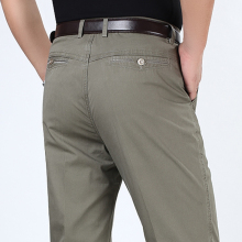 夏季商务男装休闲裤 中年纯棉直筒长裤 薄款高腰抗皱男士休闲裤