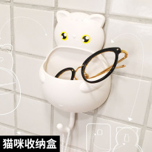 卡通小猫置物盒吸壁式收纳架强力吸盘浴室卫生间厨房壁挂牙刷架