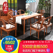 龙森全实木餐桌椅组合新中式红木吃饭桌子刺猬紫檀长方桌餐厅家具