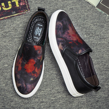 男鞋春夏季潮鞋2017新款韩版乐福鞋男一脚蹬印花休闲鞋板鞋懒人鞋