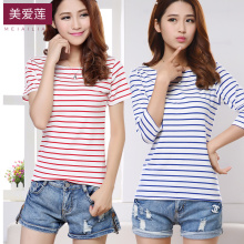 春秋装七分袖t恤女夏大码短袖T恤棉打底衫韩版条纹t恤潮上衣