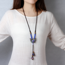 特色民族风夸张吊坠百搭景泰蓝挂件项链配饰长款毛衣链女款春夏