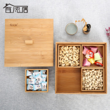 百沐居竹制干果盒创意糖果日式零食盘多功能水果盘分格带盖子母盒