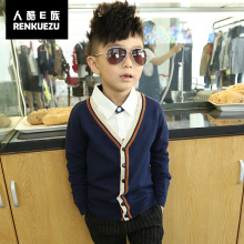 人酷e族童装儿童毛衣男童针织衫 中大童纯棉开衫2017春装新款 潮