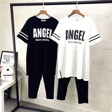 加肥加大码女装200斤胖妹妹夏季休闲运动套装上衣短袖T恤七分裤潮