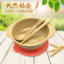 雅培稻壳环保儿童餐具四件套创意笑脸防滑吸盘训练碗勺筷吸盘垫