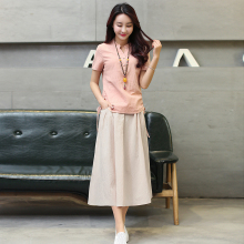 2016夏季新款两件套棉麻连衣裙女韩版修身V领短袖时尚套装裙