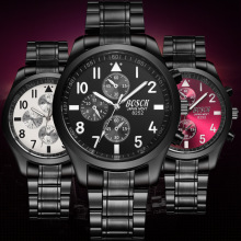 BOSCK香港柏诗手表 男士全黑金钢带商务休闲运动防水礼品石英表