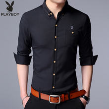花花公子长袖衬衫男 中年男装商务休闲免烫衬衣 春季新款宽松上衣