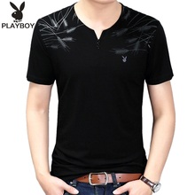 花花公子夏季短袖t恤男 动物图案V领丝光棉半袖 男装青年简约上衣