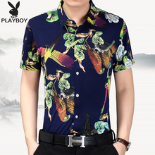 花花公子2017夏季花衬衫男短袖中年修身印花衬衣男装中国风上衣潮