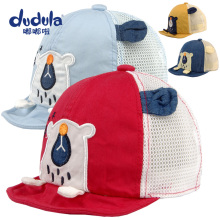 嘟嘟啦夏季网眼透气鸭舌帽翻边宝宝遮阳卡通帽子男女童夏天翘舌帽