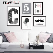 黑白字母北欧装饰画创意样板房挂画客厅画美式组合画沙发背景墙画