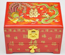 结婚礼物首饰盒木质龙凤呈祥漆器梳妆盒化妆盒戒指饰品收纳盒带锁