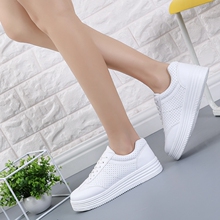 2017新款透气小白鞋女夏 百搭女运动鞋休闲板鞋厚底系带单鞋女