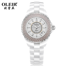 欧雷亚 女表正品 陶瓷手表石英表女式防水手表潮流时尚水钻 L8006