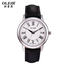 欧雷亚 正品手表真皮带男士手表防水石英表时尚商务休闲复古男表