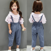 童装女童春款套装2017新款儿童长袖衬衫背带裤两件套宝宝韩版长裤