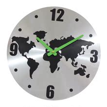 瑞达 铝框12英寸跳秒简约世界地图挂钟客厅钟表宜家风格墙壁钟