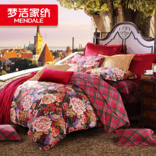 梦洁出品 长绒棉印花四件套全棉高支高密床上用品 海伦娜花园