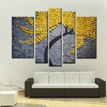 现代家居客厅装饰画沙发墙壁画纯手绘立体凹凸刀画五拼发财树挂画