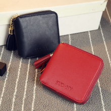 2016秋冬新款欧美简约方形女士钱包短款拉链小钱夹流苏迷你零钱包