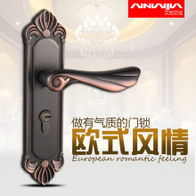 艾尼艾佳房门锁室内卧室静音中式仿古铜实木门把手欧式门锁三件套