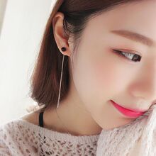 s925纯银黑色玛瑙耳钉女日韩国气质简约长款流苏耳环耳饰品防过敏