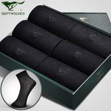 黑色商务男士中筒七匹狼男袜子休闲防臭透气网眼棉袜吸汗夏季薄款