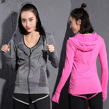 女子跑步罩衫健身衣瑜伽服速干长袖秋冬运动休闲渐变拉链连帽外套