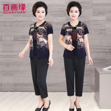妈妈夏装套装女50-60岁中老年人女装短袖两件套2017新款奶奶裤子