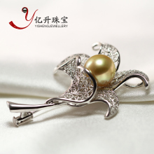 亿升 S925银镶10-11mm正圆海水金珍珠胸针 送妈妈礼物然