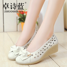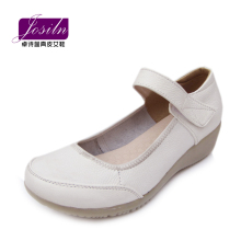 2017护士鞋 白色 女单鞋 真皮工作鞋女坡跟 浅口牛筋底妈妈鞋防滑