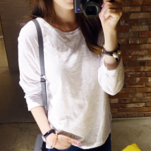 2016春装新款纯棉长袖t恤女韩版大码宽松打底衫女白色简约中长款