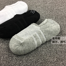 女袜子纯棉毛巾底短袜纯黑白女船袜毛圈袜浅口袜防滑隐形袜5双装