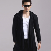 春秋新款男士长袖开衫休闲针织衫韩版连帽中长款修身外套潮款披风