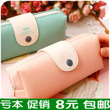 简约小清新纯色皮革笔袋 大容量高中学生女生复古铅笔盒 文具笔包